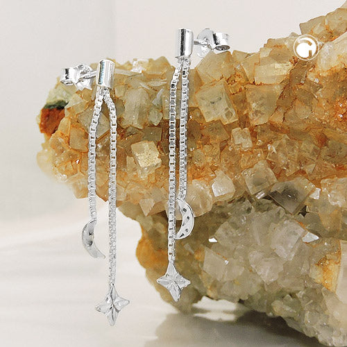 Ira | roikkuvat hopeakorvakorut / tähti ja kuu | nappikorvakorut